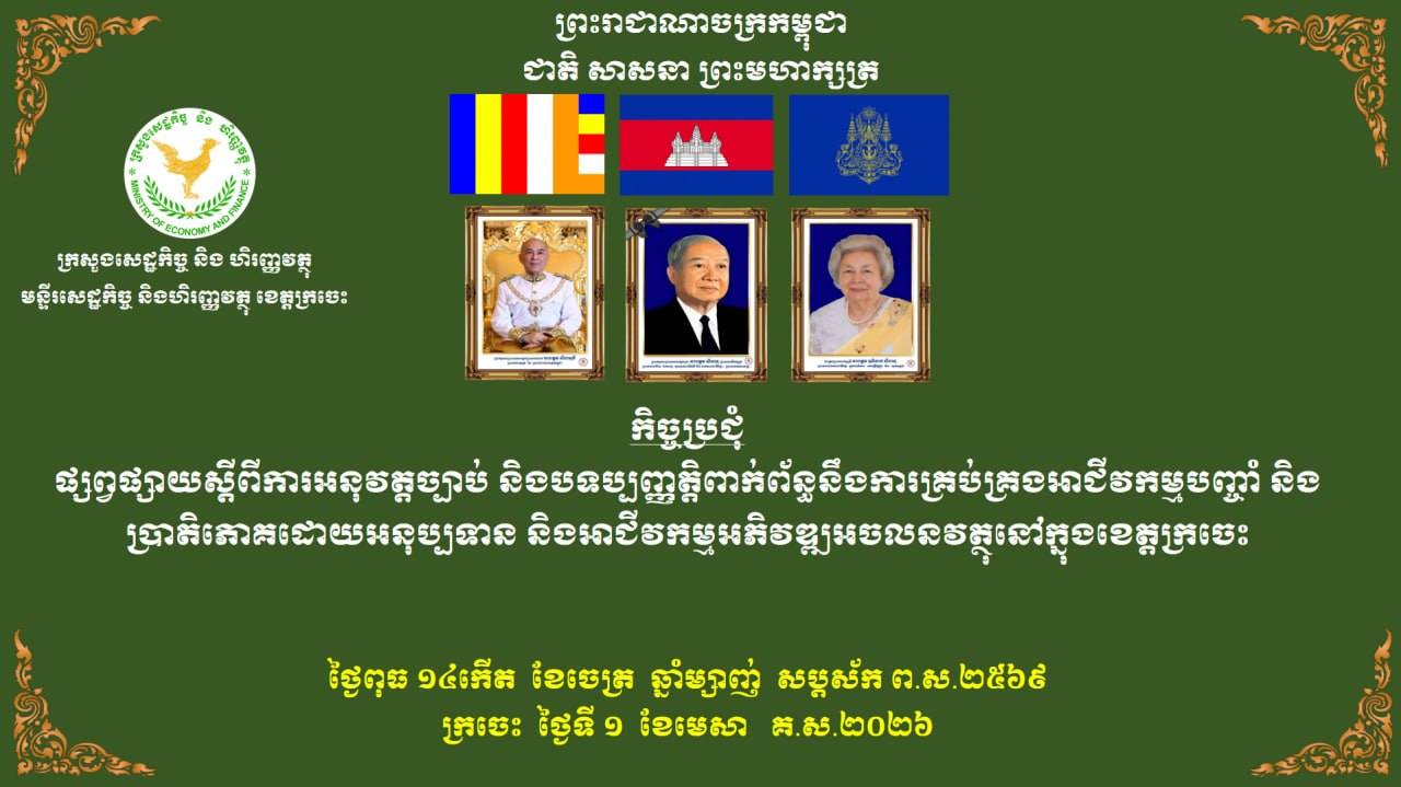កិច្ចប្រជុំផ្សព្វផ្សាយការអនុវត្តច្បាប់ និងបទប្បញ្ញត្តិពាក់ព័ន្ធនឹងការគ្រប់គ្រងអាជីវកម្មបញ្ចាំ និងប្រាតិភោគដោយអនុប្បទាន និងអាជីវកម្មអភិវឌ្ឍអចលនវត្ថុនៅក្នុងខេត្តក្រចេះ។